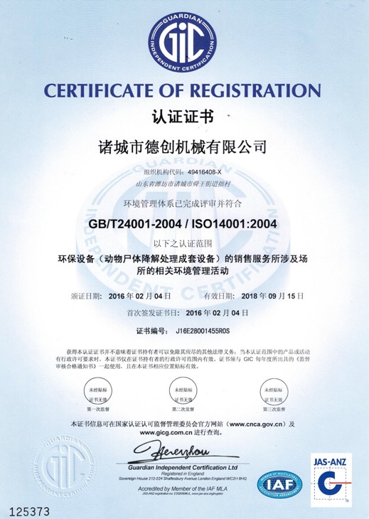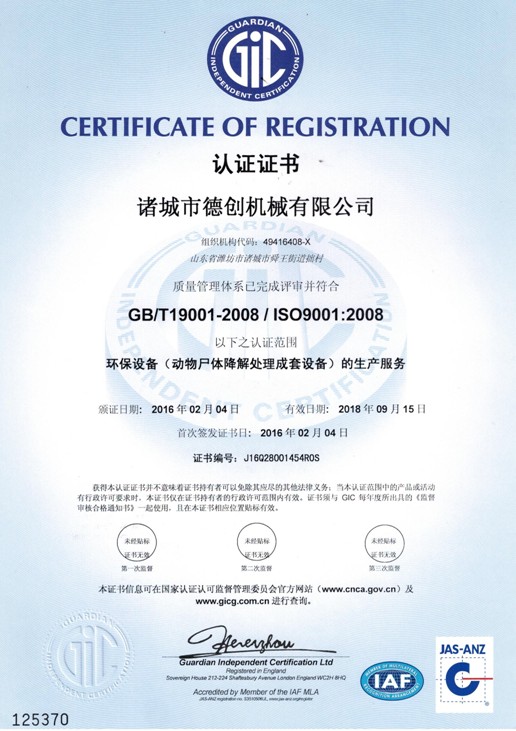 諸城市德創機械有限公司位于山東省諸城市,東鄰青島,南靠日照,北依濰坊,交通便利,環境優美。我公司專業生產無害化處理設備、濕化機、干化機。 我公司是一家擁有生產、加工及銷售的環保設備制造單位,多年來以先進的設備、過硬的質量、合理的價格、完美的售后,竭誠為廣大客戶服務,贏得了全國各地客戶的真誠信賴與大力支持,在行業中樹立了較高的知名度。